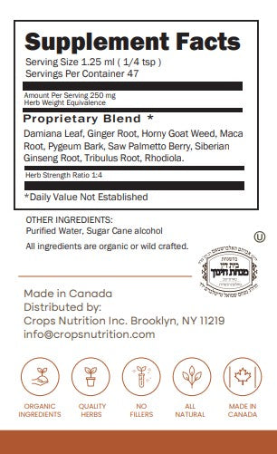 This formula is made using purely macerated herbs in sugar cane alcohol to preserve the full spectrum of plant compounds. Unlike many men’s health products that rely on isolated extracts, stimulants, or synthetic enhancers, this blend uses whole herbs traditionally used to support male system health, energy, and reproductive function. Nothing artificial. 100% natural. Vegan.