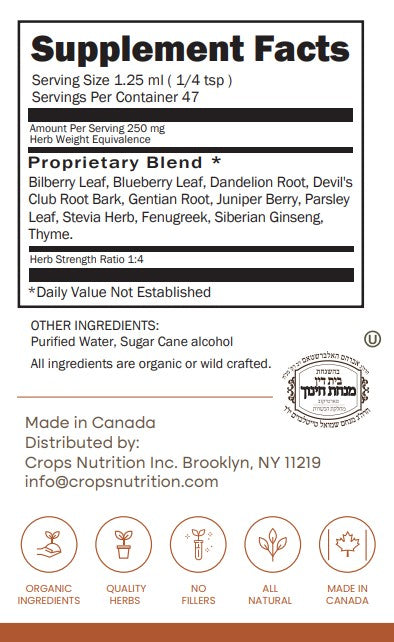 Glucose Health is a thoughtfully crafted herbal tincture made with traditional plants used to support healthy glucose balance and overall metabolic function. This formula is designed to gently support the body’s natural processes related to sugar regulation, digestion, and liver function, using only whole herbs slowly macerated for maximum potency. Glucose Health is suitable for adults and children and is often chosen as part of a daily wellness routine focused on balanced energy and digestive comfort. Made without fillers or synthetic ingredients, it reflects Crops’ commitment to clean, plant based support.